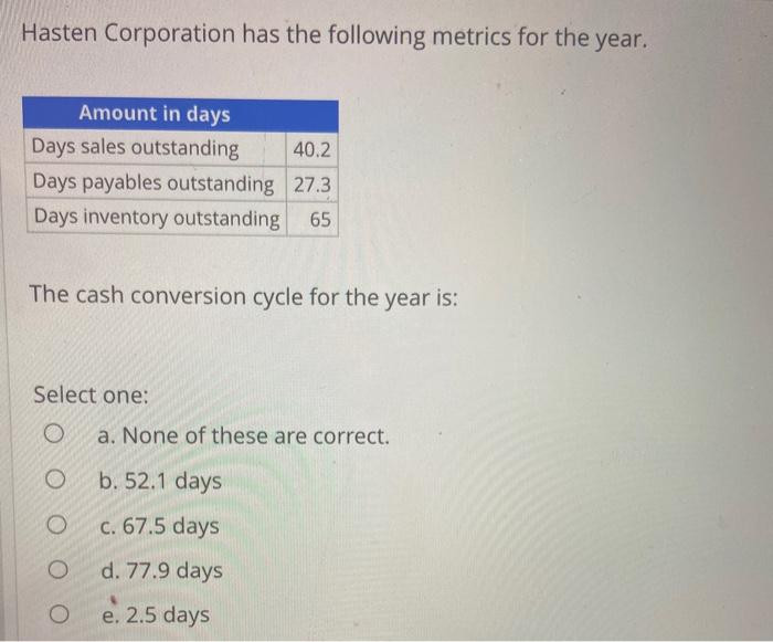 Solved Hasten Corporation Has The Following Metrics For The Chegg Com