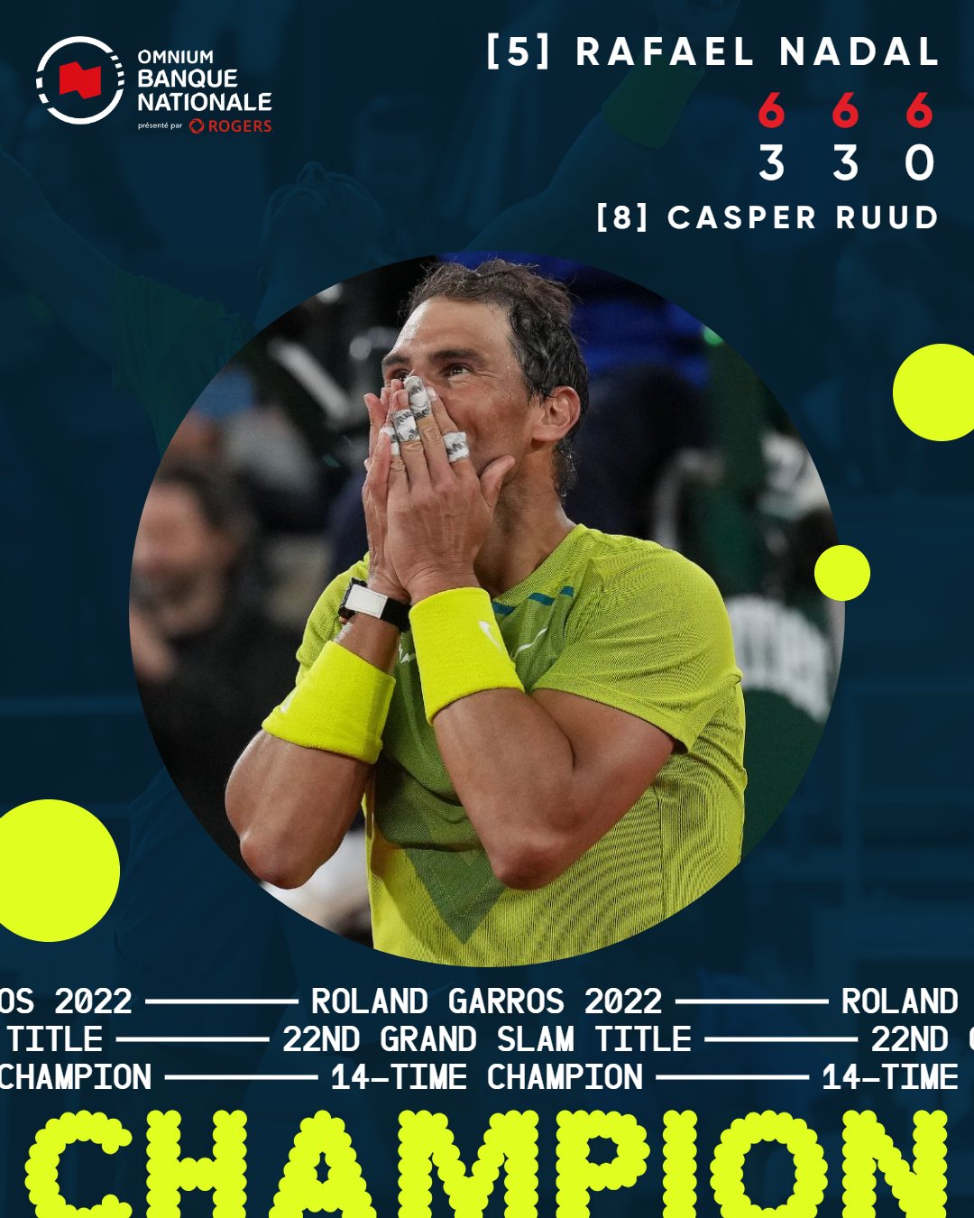 Omnium Banque Nationale On Twitter No One Is Like Rafaelnadal The Spaniard Wins His 14th Rolandgarros Title 22nd Grand Slam Title Winning Both The Australian Open And The French Open In